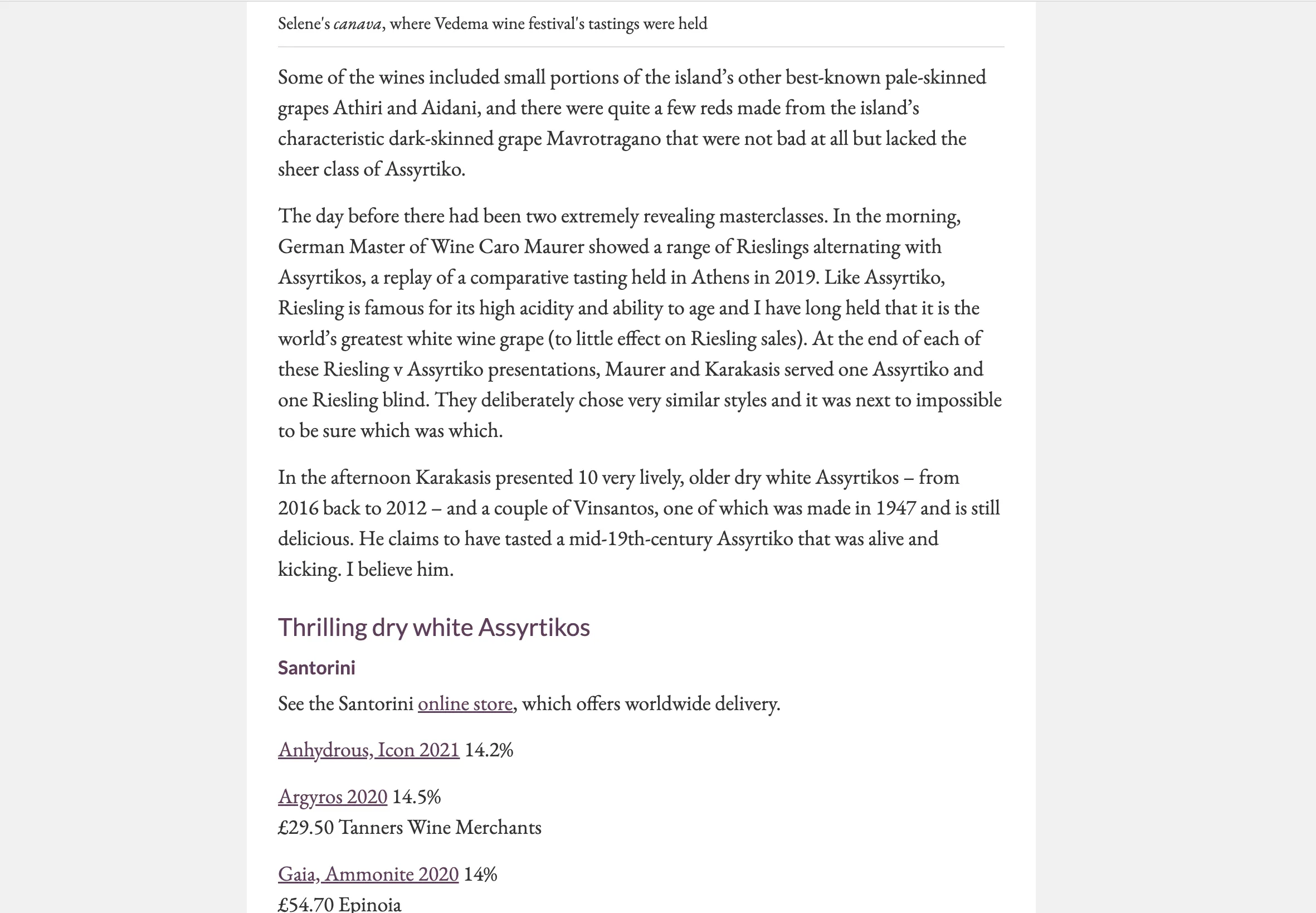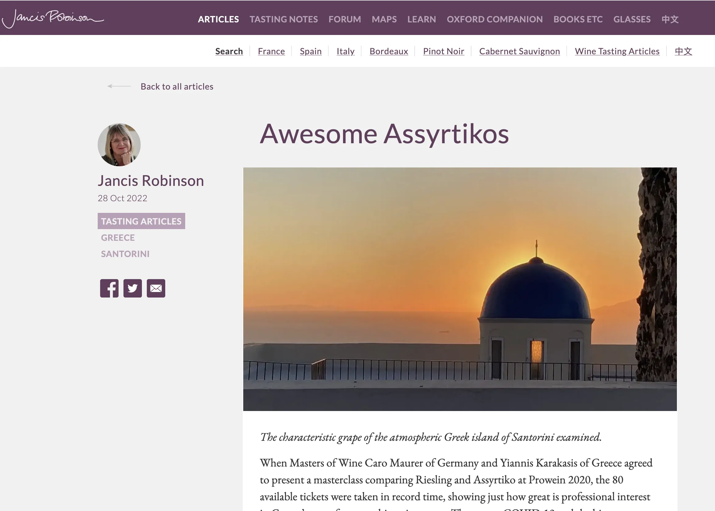 Σαντορίνη Aσύρτικο: Από την Jancis σε όλο τον κόσμο
