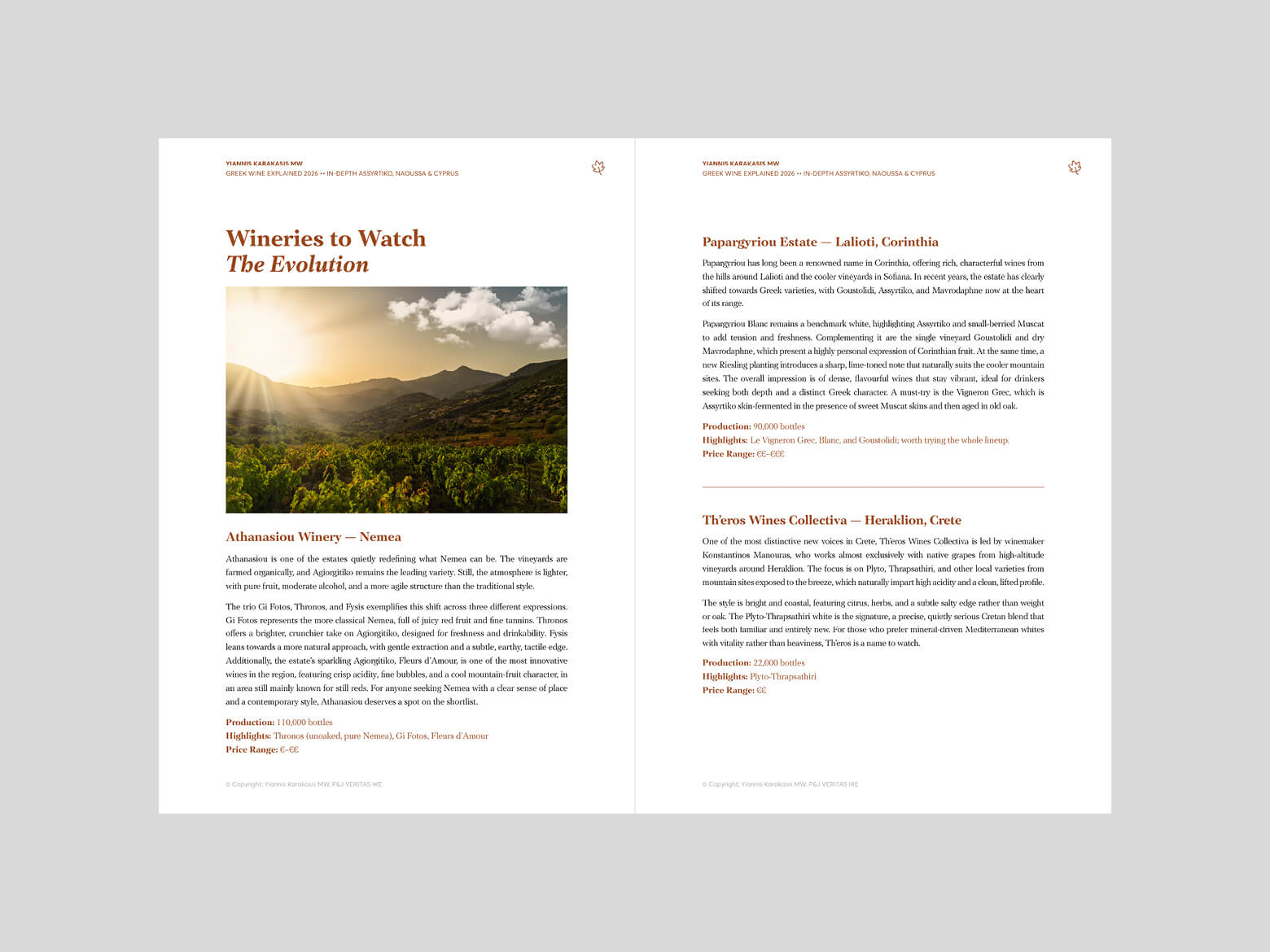 - Cyprus, placed within the wider Eastern Mediterranean reality, including a dedicated chapter by Cyprus's Master Sommelier Sotiris Neophytidis